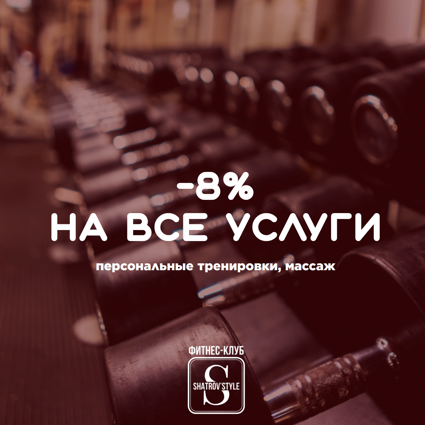 В честь 8 Марта мы делаем фитнес еще приятнее: Скидка 8% наВСЕ УСЛУГИ!
